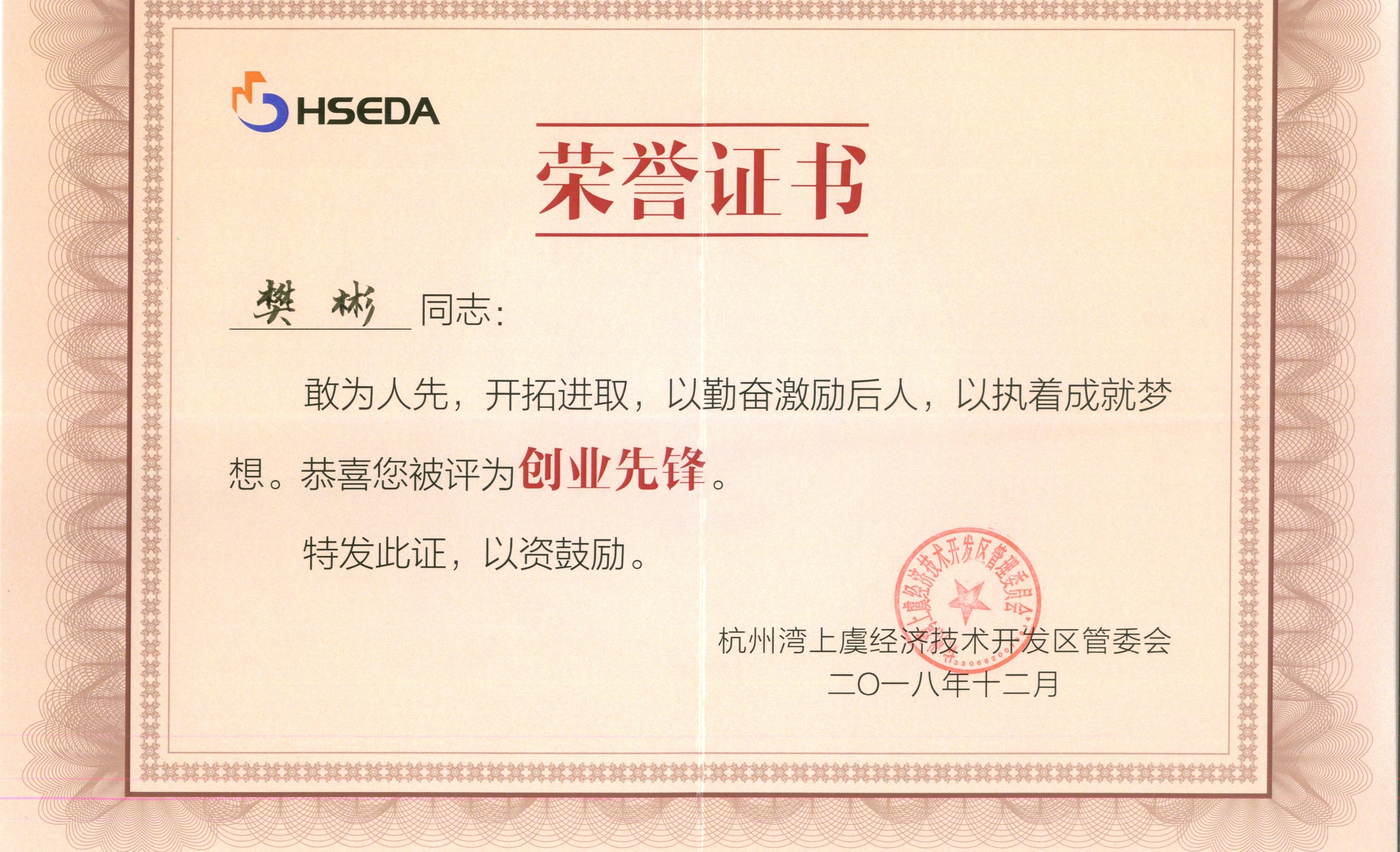 榮獲“先鋒”獎項