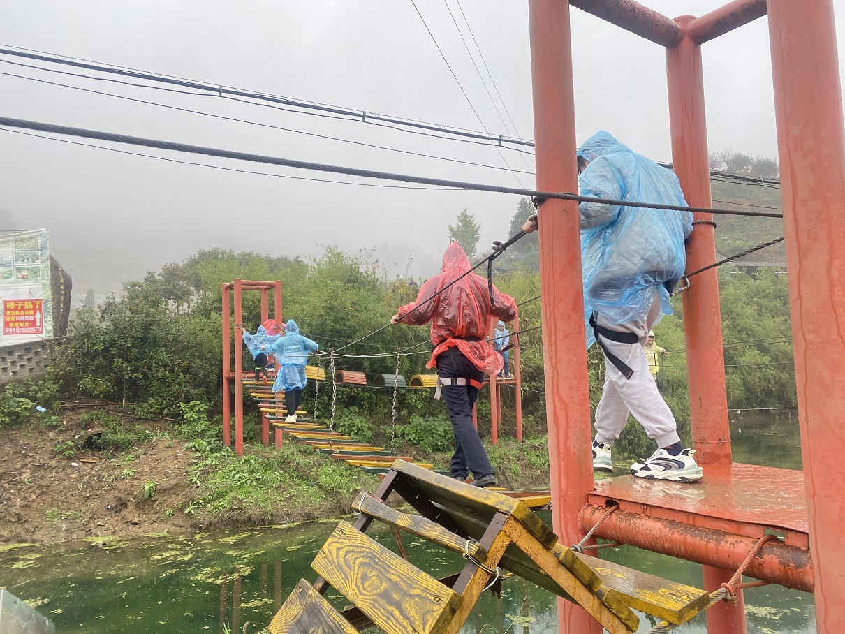 相較上午的團隊協作,下午的活動更像是個人的秀場。雨中的游玩設施略顯濕滑,給伙伴們增添不少難度,但更激起了大家的挑戰欲,伙伴之間互相幫助,反而拉近了彼此的距離。騎馬、射箭、皮劃艇、障礙穿梭,不亦樂乎。